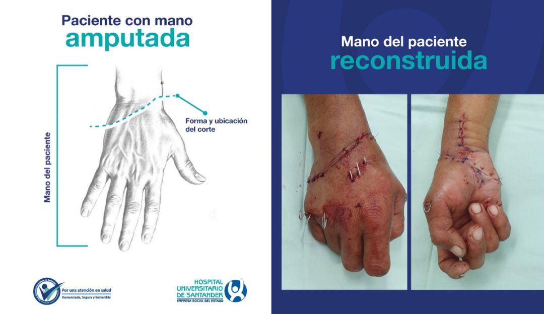 Siete profesionales del Hospital Universitario de Santander lograron reconstruir la mano derecha de un hombre de 40 años de edad que sufrió amputación de la misma, tras una riña.