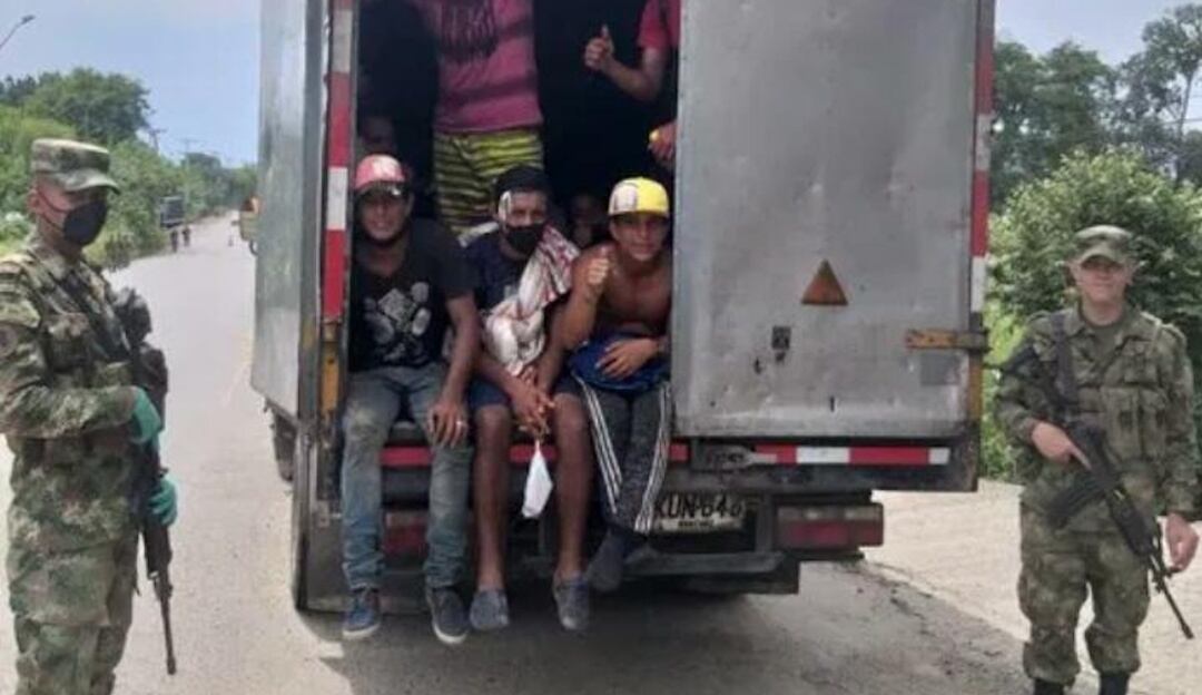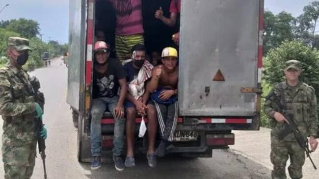 Los ciudadanos venezolanos eran llevados en un furgón a Cali.