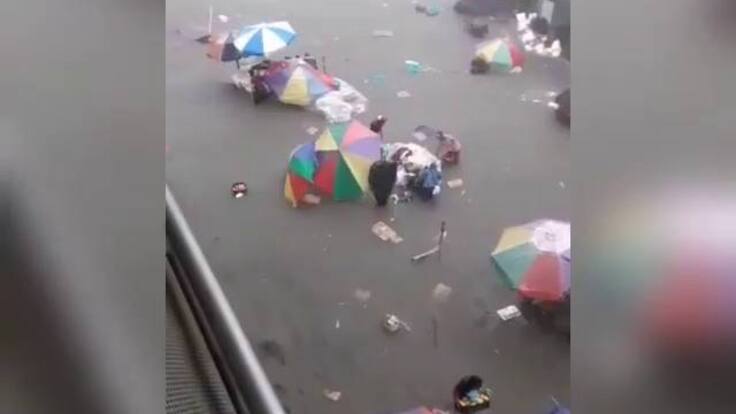 Nuevamente locales en el centro comercial del café y vendedores ambulantes afectados por la inundación en la carrera 19 con calles 16 y 17 en pleno centro de la capital del Quindío que colapsaron la movilidad en la ciudad.