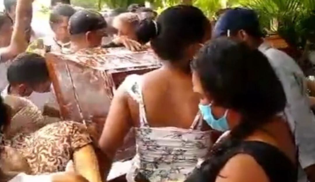 En redes sociales se conoció el video de un sepelio que se realizó hace dos días en Distracción, La Guajira con música en alto parlante, personas ingiriendo alcohol sin medidas de protección y en el que se puede ver cómo abren el féretro y esparcen maicena sobre el fallecido.