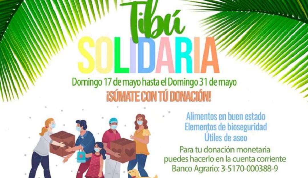 Esta donatón denominada “Tibú Solidaria” se extenderá hasta el 31 de mayo y se dispondrá de un punto de acopio ubicado en el centro de convivencia de la administración municipal y en los supermercados del casco urbano.