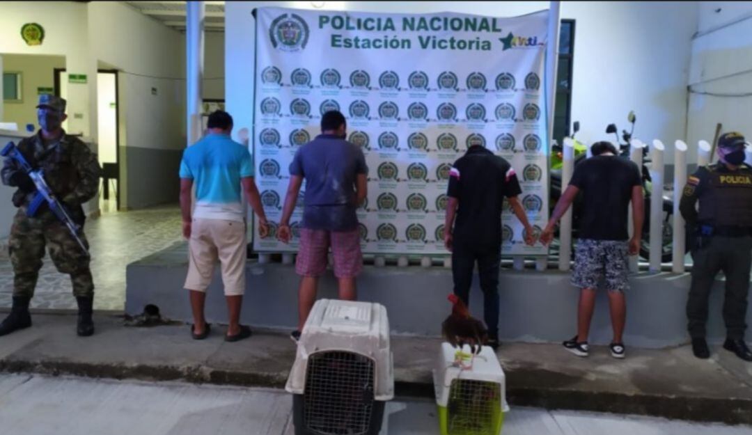 En Victoria, Caldas, fueron capturadas cuatro personas quienes se encontraban realizando una pelea de gallos en la vereda Santa Isabel, sector El Rubí.