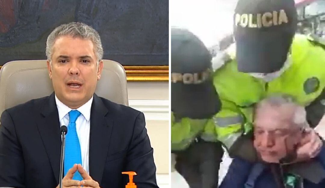 "Hemos visto que han circulado en muchas redes sociales un procedimiento policía que se llevó por unos miembros de de la Policía Metropolitana de Bogotá particularmente con una persona que es adulto mayor. Nosotros rechazamos categóricamente esas actuaciones", enfatizó Duque