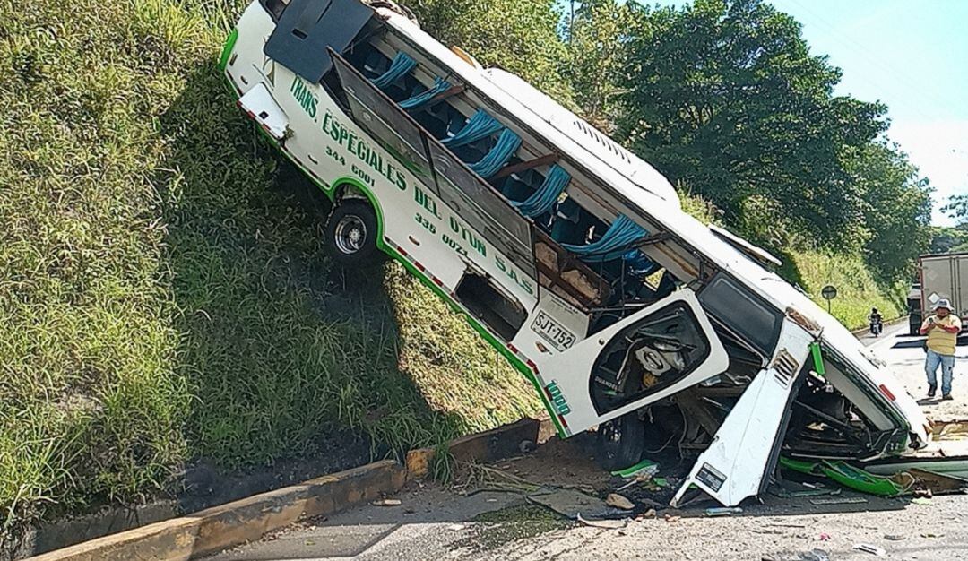 Bus de servicio especial rodó por una montaña y bloqueó vía de Pereira