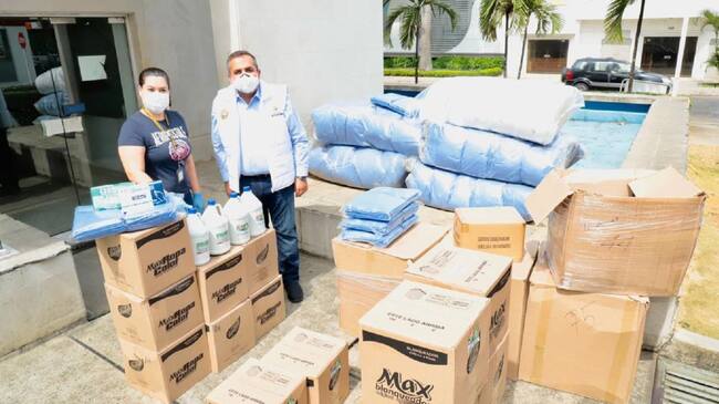 Los kits cuentan con tapabocas, gel antibacterial (galón), alcohol (galón), guantes, jabón líquido antibacterial (galón), trajes de bioseguridad de tela quirúrgica, gorros quirúrgicos, batas de seguridad, gafas transparentes y caretas de protección facial.