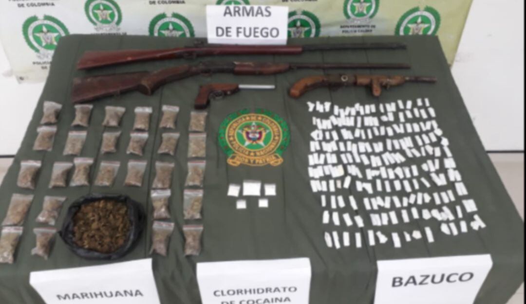 El Departamento de Policía Caldas halló cuatro armas de fuego y 625 gramos de sustancias estupefacientes en la vereda El Bosque del municipio San José.