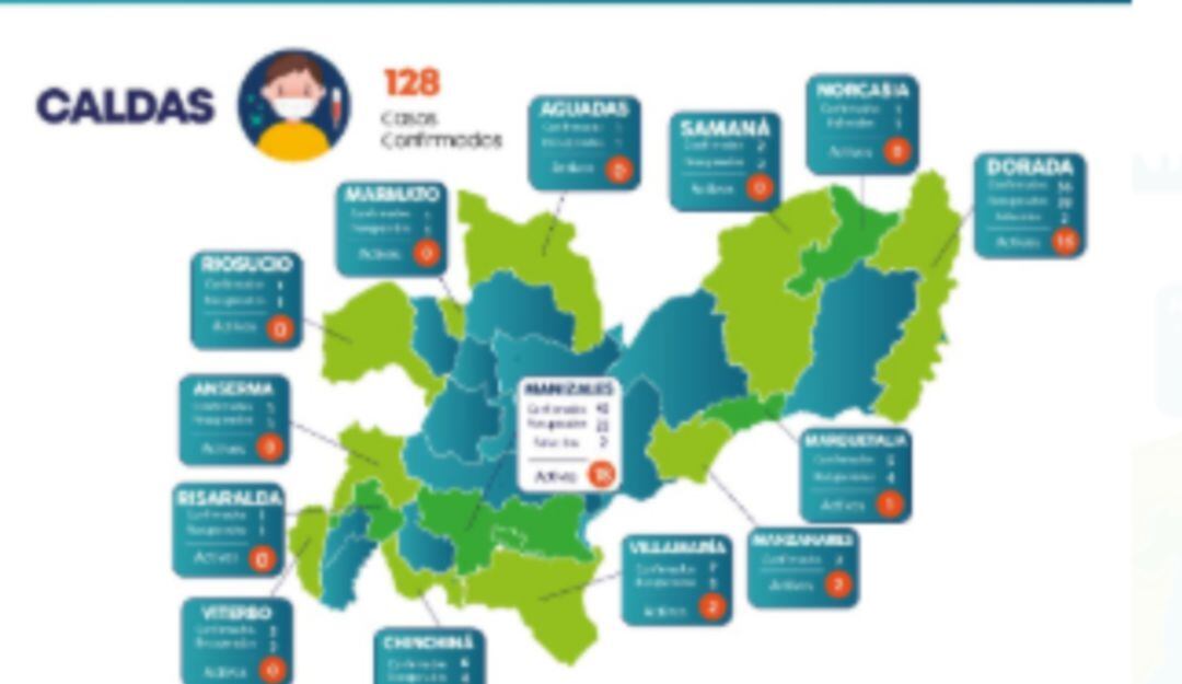 Acerca de las otras localidades de Caldas, la situación se encuentra así: Manizales tiene 42 casos de COVID-19, Chinchiná 6, Samaná 2, Marquetalia 5, Norcasia 1, Aguadas 1, Viterbo 2, Villamaría 7, Anserma 1, Risaralda 1, Marmato 1, Riosucio 1 y Manzanares 2.