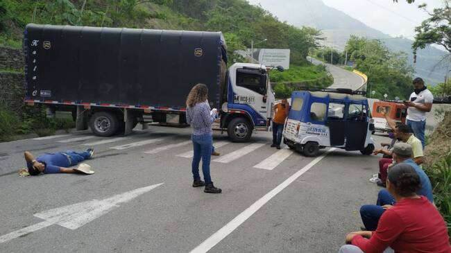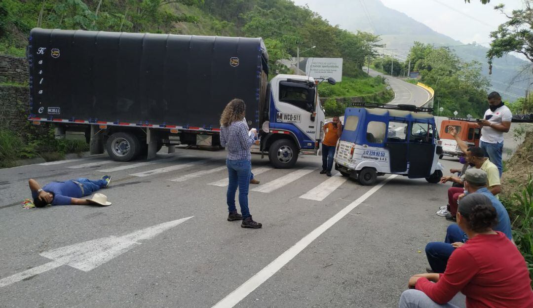 Habitantes de Ituango bloquean con camiones la vía de acceso al municipio, según estos porque temen el ingreso de personas contagiadas de COVID-19