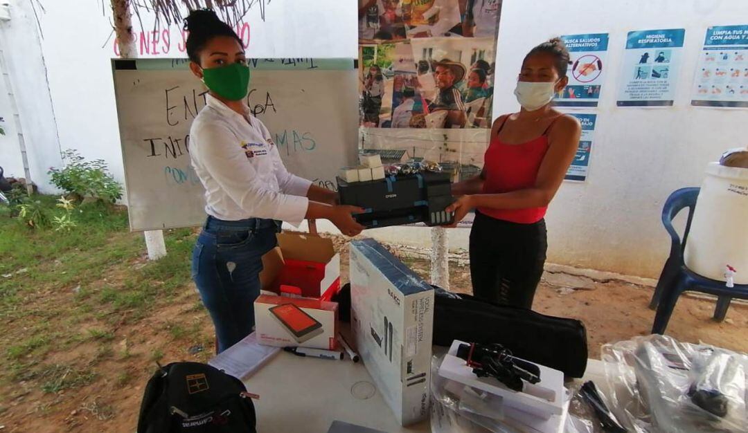 Le entrega de los equipos hace parte del componente de Comunicación para el Desarrollo y la Convivencia del programa de acompañamiento socio-económico a 655 familias de la urbanización Villa de Mompox, que financia el Fondo Adaptación con una inversión global de $1.300 millones, para mejorar las condiciones de vida de esta localidad del departamento de Bolívar.