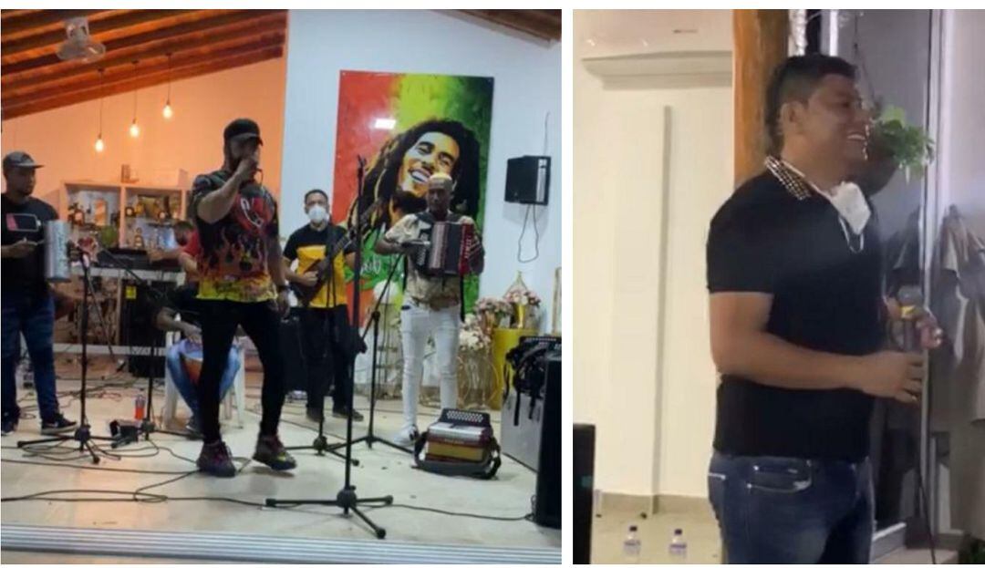 Bastante molesto se mostró el alcalde del Distrito de Turbo en el Urabá antioqueño, Felipe Maturana, al conocer que dos reconocidos cantantes vallenatos, Alex Manga y Nelson Velázquez, estuvieron en la noche del sábado brindando un concierto privado en una finca de la vereda Casanova. Primero poniendo en riesgo a las personas que estaban allí por la aglomeración que generaron y segundo violando el decreto regional de toque de queda, ley seca y la prohibición que existe del ingreso de personas que lleguen desde otras subregiones.