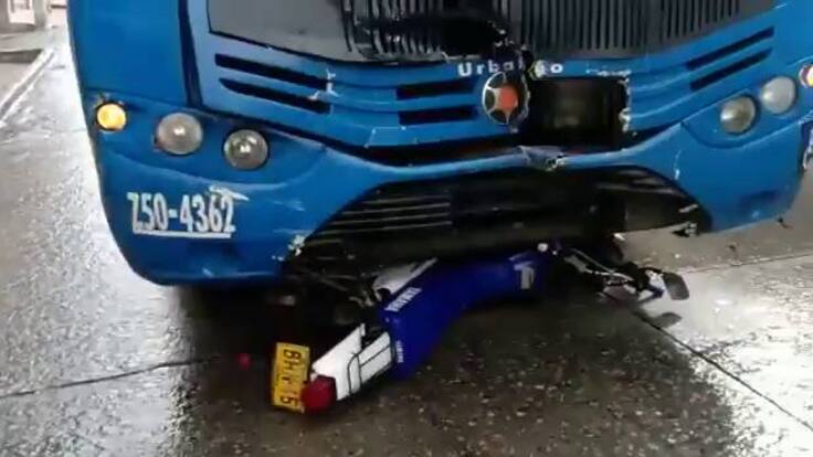 En horas de la mañana de este miércoles se produjo un aparatoso accidente entre un SITP zonal y una motocicleta carrera 7 con diagonal 45 a sur (sector La Glorieta Suroriental).