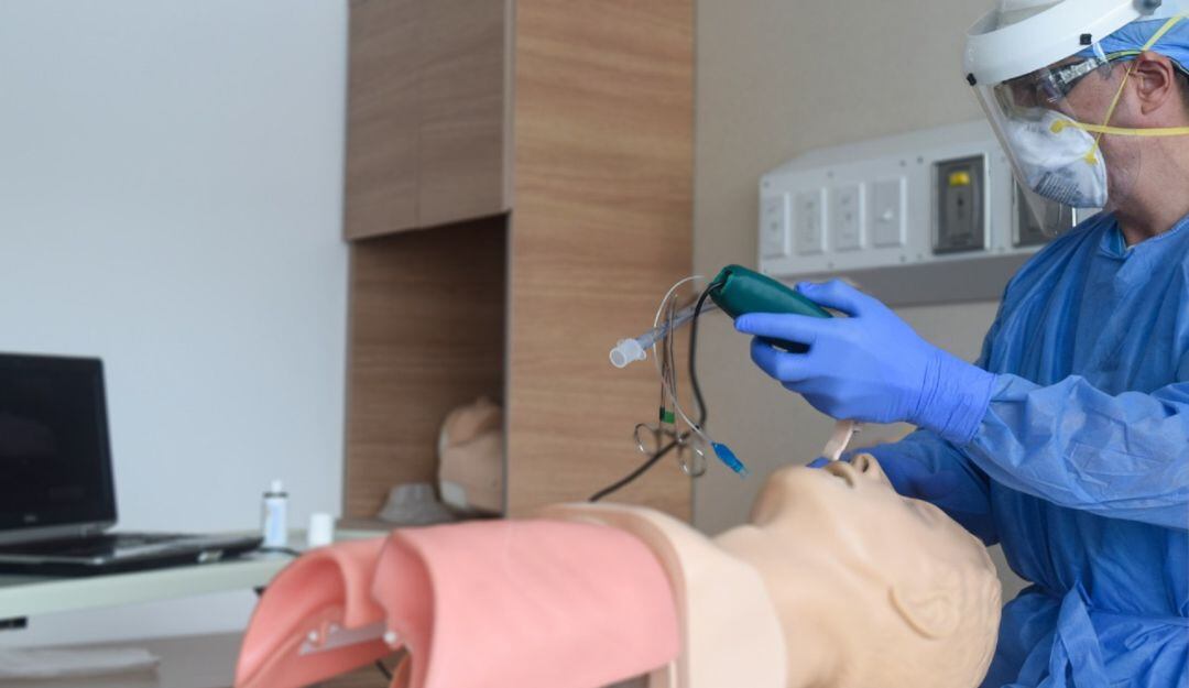 “Quien se enfrente a la vía aérea de un paciente o va a intubar a alguien que está en una dificultad respiratoria debe ser la persona con más experiencia del equipo. Las intubaciones endotraqueales están entre las actividades que generan más secreciones y más riesgo de contacto en el personal de salud. Si se tiene un videolaringoscopio es ideal utilizarlo”, explica José Fernando Arango, anestesiólogo del Hospital Pablo Tobón Uribe y líder de este desarrollo desde el campo médico.