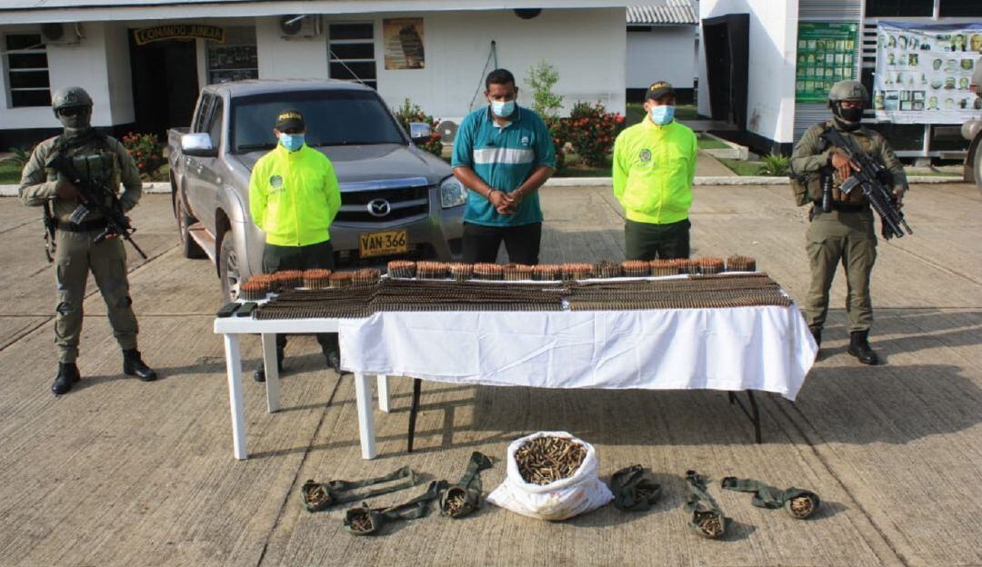 Se pudo conocer que servidores de la Dijín de la Policía Nacional, capturaron en el municipio de Arboletes, en el Urabá antioqueño a Jhon Olmedo Ramírez, alias "Guajiro", cuando transportaba 9000 cartuchos para fusil.