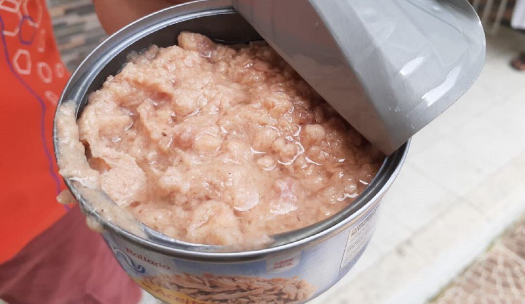 “Le entregaron cuatro latas de atún a mi nieto de 6 años y eso es cartón molido lo que tiene dentro. Después de consumirlo le dio un fuerte dolor de estómago, pero, por fortuna no fue necesario llevarlo a un hospital porque le dimos unos medicamentos que mejoraron su salud. Pedimos que por favor miren los productos antes de darlos porque puede generar una intoxicación masiva”, aseguró Manuel Rivas, padre de familia.