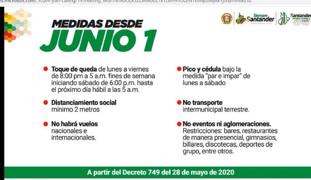 Por su parte el gobierno de Santander, dijo que a partir del primero de junio se acaba pico y género para que se salgan a realizar a actividades físicas.
