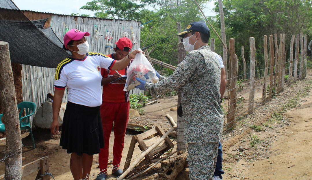 La Armada Nacional con el propósito de integrar las capacidades de las Fuerzas Militares al esfuerzo de la Acción Unificada del Estado y gracias al apoyo brindado por el sector privado, hizo entrega de más de 180 kits alimentarios en zona rural de los departamentos de Sucre y Bolívar.
