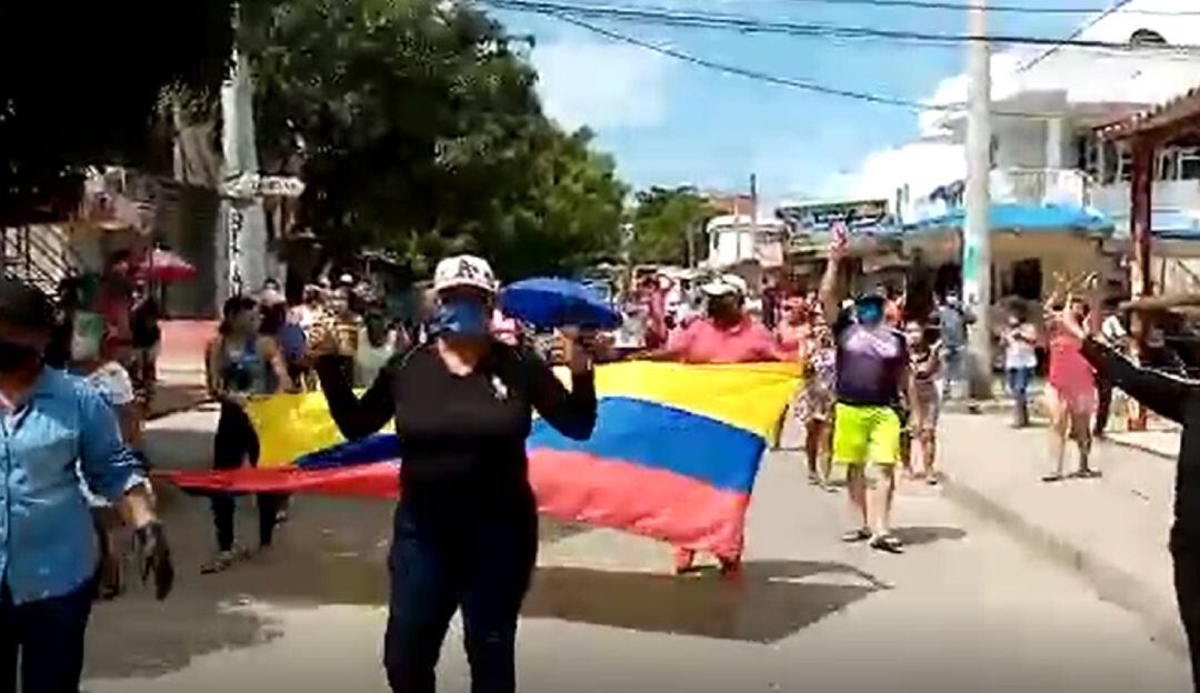 Con pancartas, banderas, ollas, calderos y cucharas, la comunidad del barrio 20 de Julio en Cartagena, decidió adelantar una manifestación pacífica en la vía principal ante el mal procedimiento de entrega de ayudas humanitarias.
