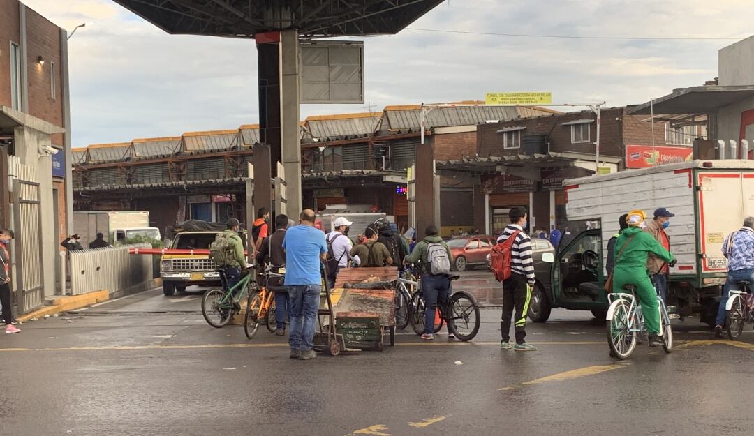 Desde las 5 de la mañana iniciamos el recorrido hacia la localidad de Kennedy. El primer puesto de control lo encontramos ubicado en la avenida Americas, llegando a Corabastos inicia el trancón, se veía gente caminando hacia la central mayorista.