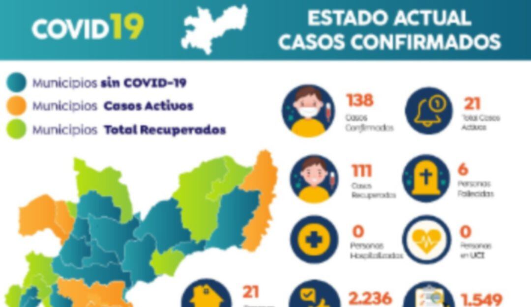 Explican desde la Territorial de Salud que de los 138 casos presentados en todo Caldas, 111 están recuperados y seis han fallecido, por lo que los casos activos son 21.