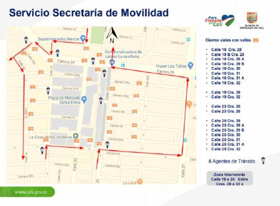 Las personas que transiten por la calle 25, deberán hacer un giro a la derecha a la altura de la carrera 32 y por esa vía conectar con la calle 27, para seguir su trayecto hacia el norte de Cali.