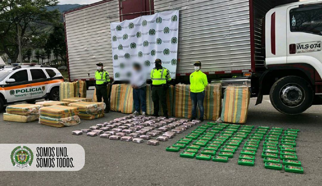 En el vehículo interceptado en el norte de Antioquia, la policía encontró 774 kg de marihuana y 93 de base de coca.