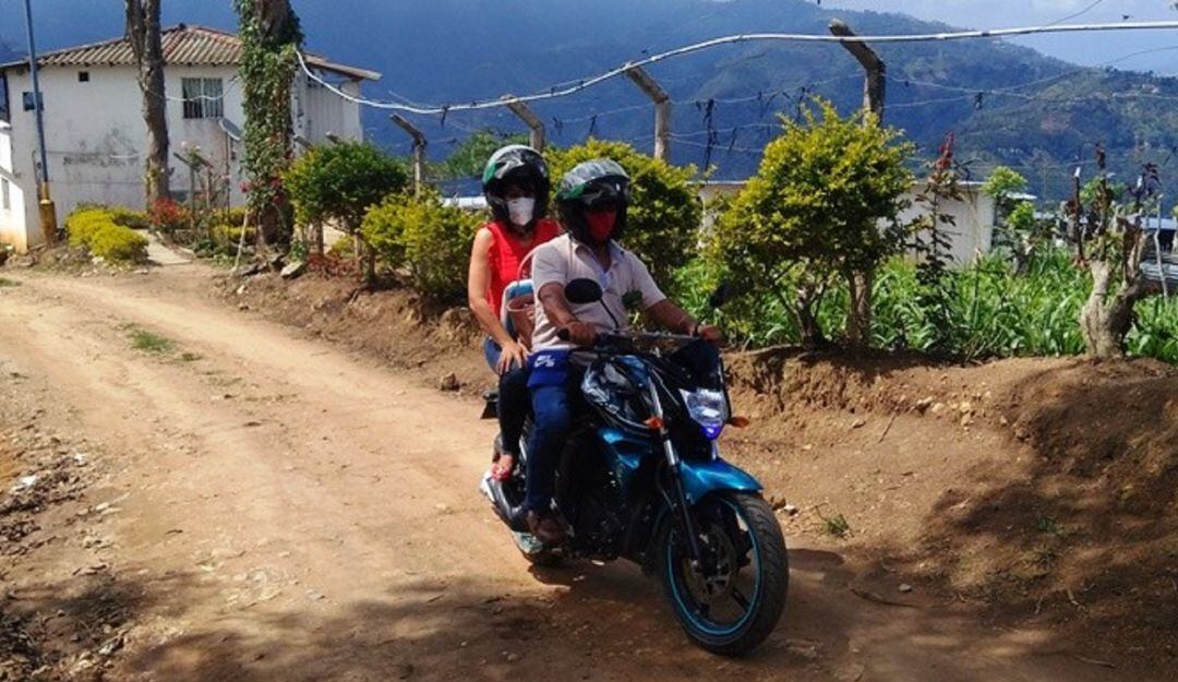 La mujer debió recorrer 15 kilómetros en vías maltrechas, para recorrer seis veredas. En la motocicleta de una padre de familia contactó a 241 estudiantes de primaria y bachillerato.