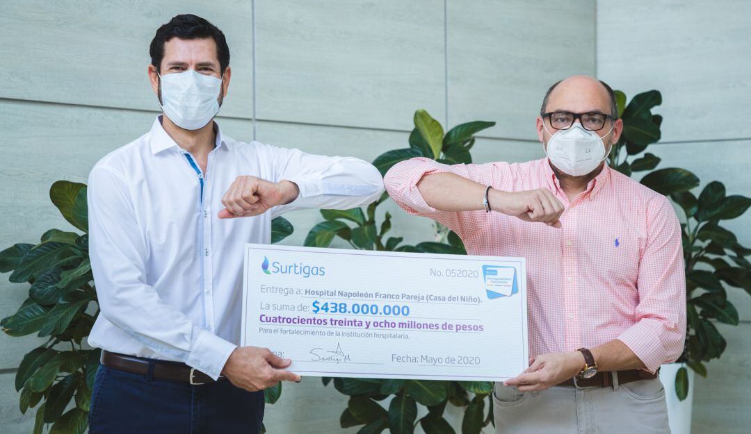 Con el fin de combatir los efectos del COVID-19 y de fortalecer el sistema de salud en Cartagena y Bolívar, Surtigas entregó a la Fundación Hospital Infantil Napoleón Franco Pareja – La Casa de Niño la suma de $438 millones de pesos que serán destinados para la compra de Elementos de Protección Personal (EPP) para médicos, enfermeras y personal administrativo que está en primera línea de atención de pacientes confirmados y sospechosos de COVID-19.