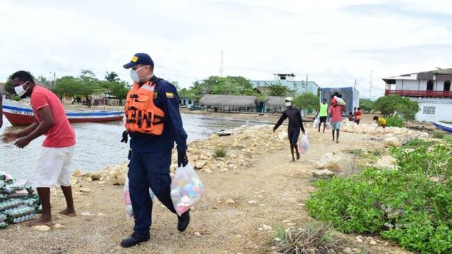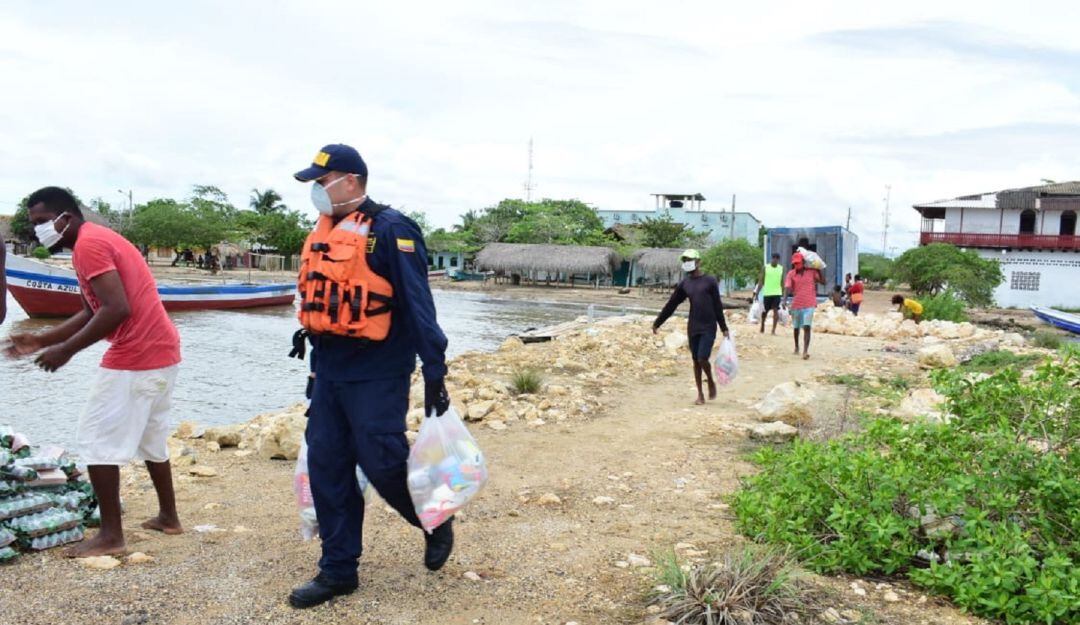 En el marco de la Acción Unificada del Estado y la protección del territorio, la Fuerza Naval de Caribe, a través de Unidades de Reacción Rápida de la Estación de Guardacostas de Coveñas, transportó por vía marítima desde el corregimiento de Berrugas hasta el Hotel Isla Roots en la Isla Tintipán, los cerca de 2.500 kilos de ayudas humanitarias, que fueron entregados para beneficiar a los pobladores más vulnerables de esta zona insular cartagenera, durante la emergencia a causada del COVID-19.