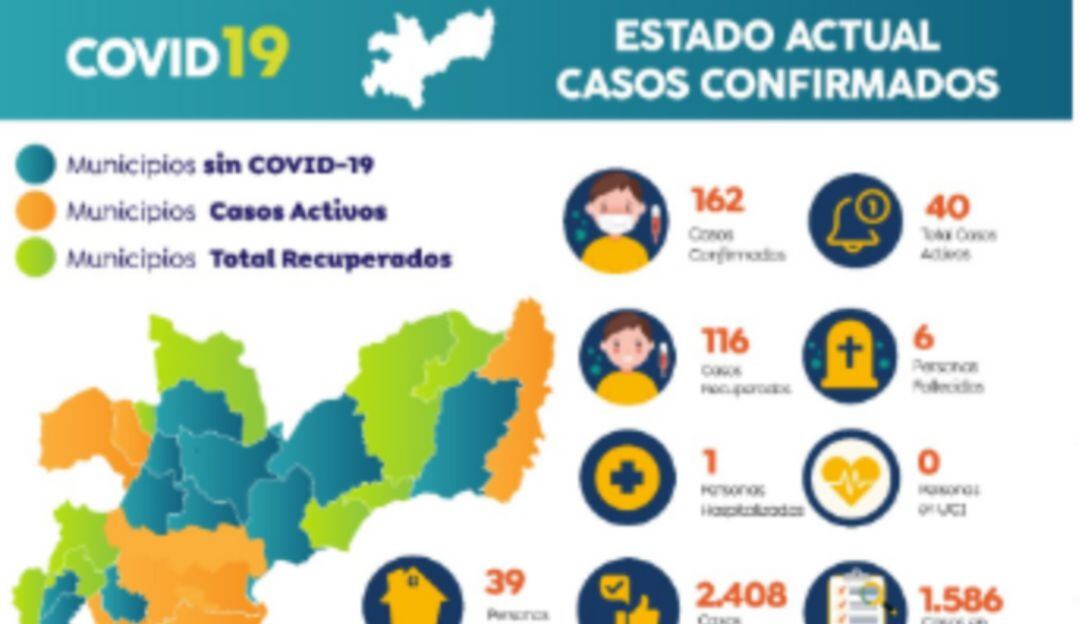 Con los dos nuevos casos registrados, el departamento llega a 162 personas contagiadas de la enfermedad, sin embargo, desde la Territorial aseguran que 116 ya se han recuperado y seis más han fallecido, por lo que los casos activos actualmente son 40.