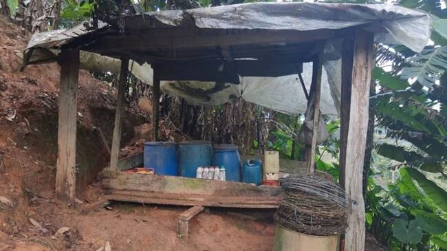 Fueron varios los uniformados que llegaron al lugar y destruyeron el complejo construido en madera y zinc, donde se producían los narcóticos; allí se hallaron 2.705 gramos de base de cocaína, 20 galones de insumos líquidos y 38 kilogramos de insumos sólidos. No se presentaron capturas.