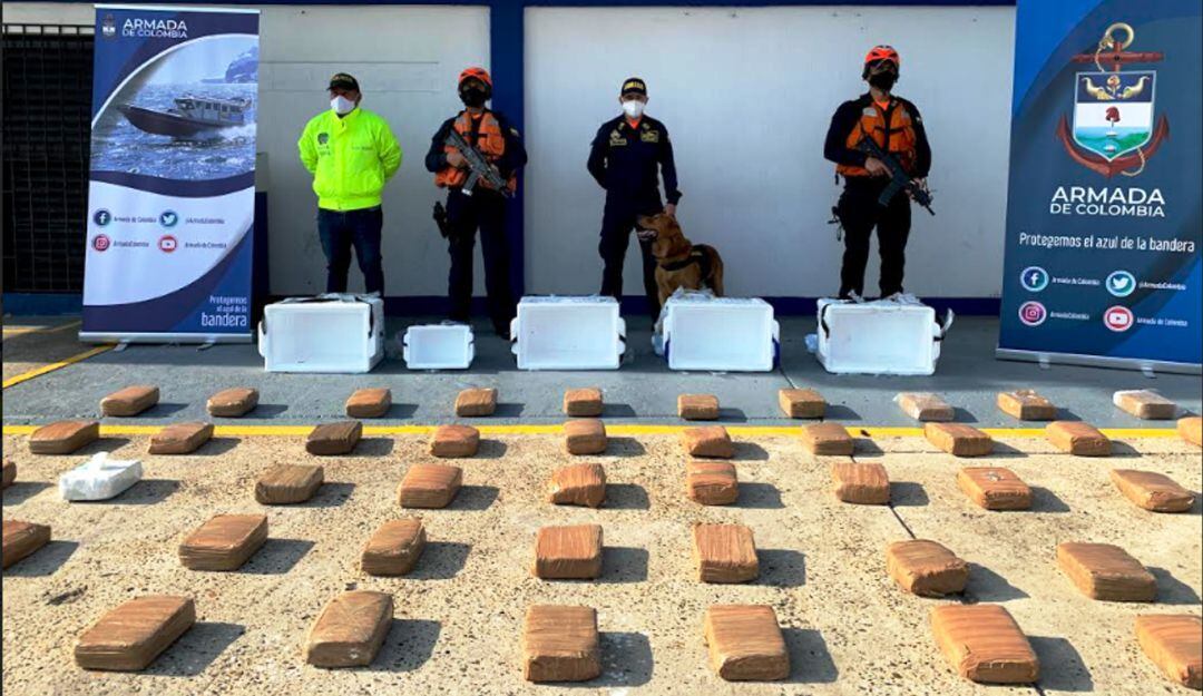 Las cavas que contenían 46 paquetes rectangulares, fueron recuperadas por parte de los tripulantes de la Institución Naval y llevadas al muelle de la Estación de Guardacostas de Cartagena, en donde efectivos de la Policía Judicial realizaron la Prueba Inicial Preliminar Homologada –PIPH, al material incautado, arrojando positivo para marihuana. El alcaloide fue puesto a disposición de las autoridades competentes.