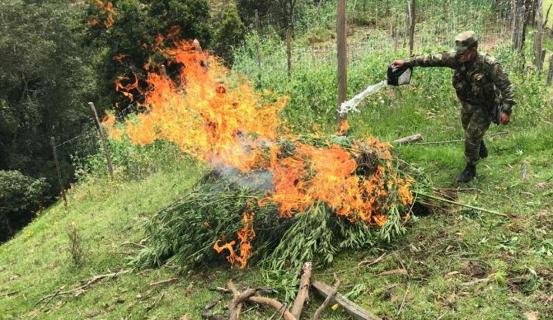 El oficial aseguró que los soldados realizaron la respectiva erradicación del cultivo de más de 300 matas, para su posterior quema controlada.