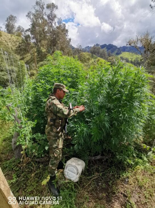 El coronel Francisco Javier Agudelo, comandante del Batallón de Infantería número 16 Patriotas, aseguró que las plantas del cannabis estaban en medio de un siembro de arvejas y tomate de árbol.