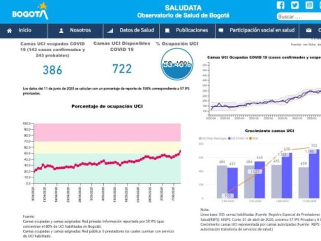 En la mañana de este jueves, el observatorio de la COVID-19 en Bogotá de la Secretaría de Salud mostraba que de las 722 camas de las ucis que tiene el Distrito para atender el coronavirus, ya se han ocupado 347, es decir, 48%.