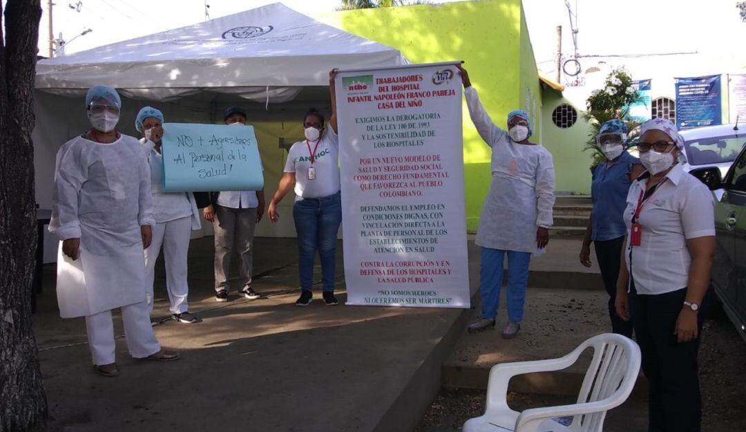 Concentrados en diferentes centros asistenciales de Cartagena, los empleados del sector salud asociados en Anthoc Bolívar, nuevamente se pronunciaron sobre las amenazas que han recibido médicos, enfermeros y personal administrativo durante la pandemia del COVID-19.