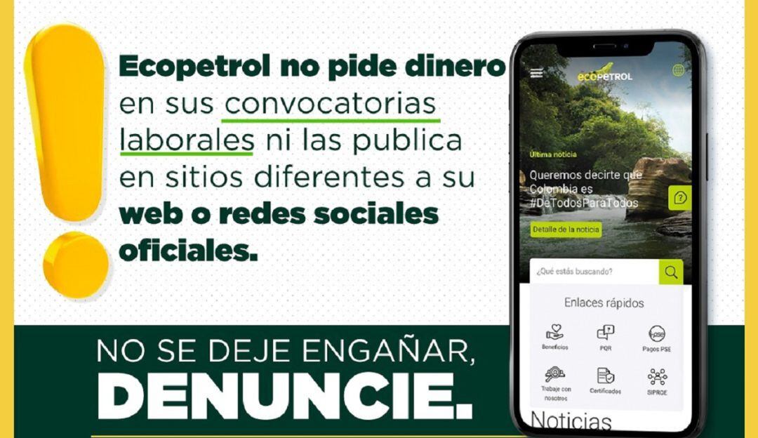 Ecopetrol alerta sobre falsos procesos de contratación laboral en Huila, esto a cambio de consignaciones de dinero, con el fin de gestionar supuestas vacantes.