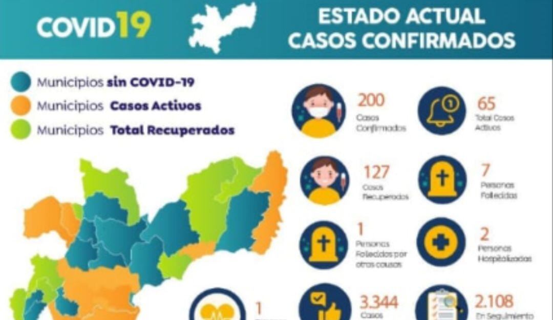 El total de fallecidos en el departamento a causa del virus han sido 7, y los municipios que todavía tienen presencia del mismo son Manizales, La Dorada, Chinchiná, Villamaría, Supía, Riosucio, Neira, Marquetalia, Norcasia y Manzanares.