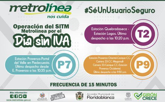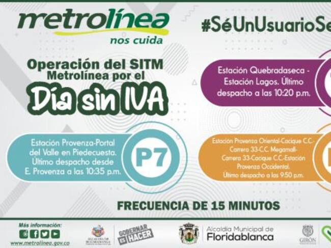 El sistema masivo Metrolínea anunció que este viernes amplía su horario de atención por el día sin IVA ya que el comercio estará abierto las 24 horas del día.