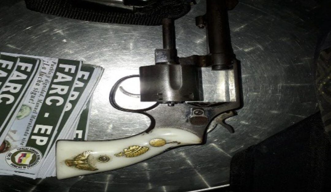 Alias ‘El Paisa’ se movilizaba en un vehículo particular en el que al parecer, portaba placas falsas y en el cual se encontró 1 Subametralladora mini UZI calibre 9 mm con su proveedor, 2 armas tipo revólver, cartuchos y panfletos alusivos a las disidencias, columna móvil Dagoberto Ramos.