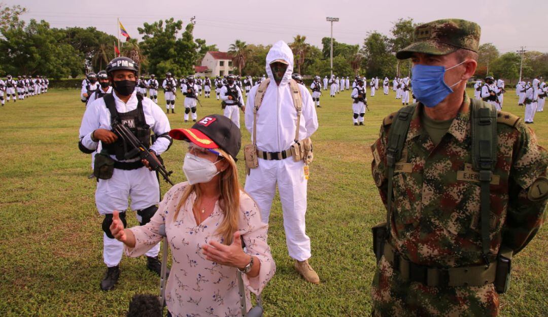 La gobernadora del Atlántico Elsa Noguera afirmó que los 400 soldados que llegaron este viernes a Barranquilla hacen parte del compromiso del ministerio de Defensa para reforzar los cercos sanitarios en el departamento.