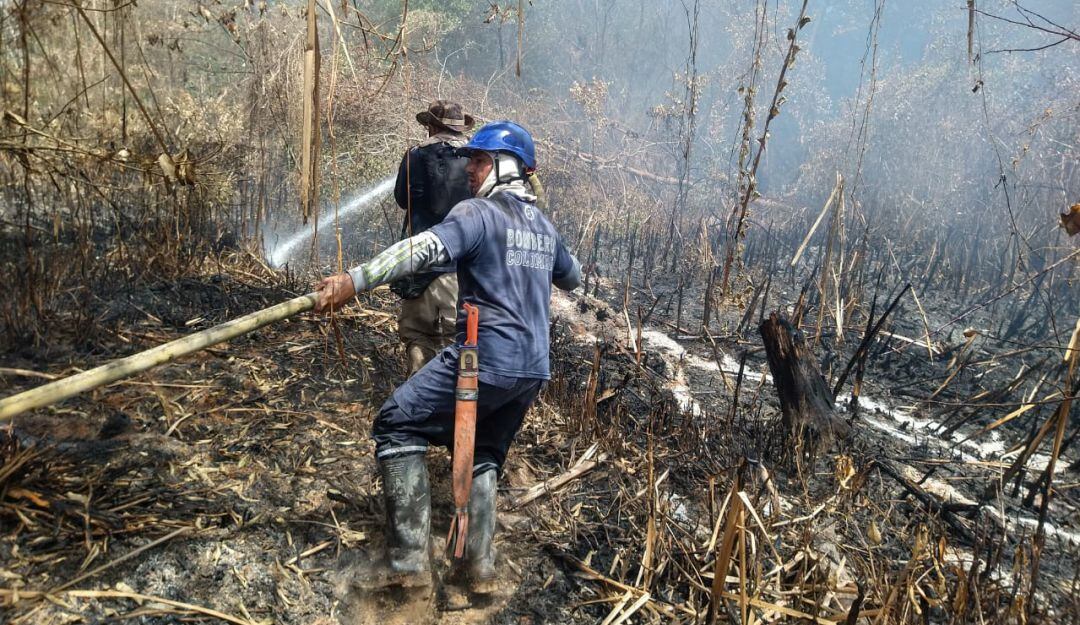 La labor se dificulta porque hay que transportar el agua en una distancia de más de 400 metros del Caño Clarín Viejo a los cuatro focos del fuego, afirmó la Comandante del Cuerpo de Bomberos del municipio de Ciénaga capitán Lourdes Peña.