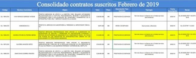 En 2019 estuvo contratado en la oficina de atención al ciudadano del Instituto de Desarrollo Urbano
