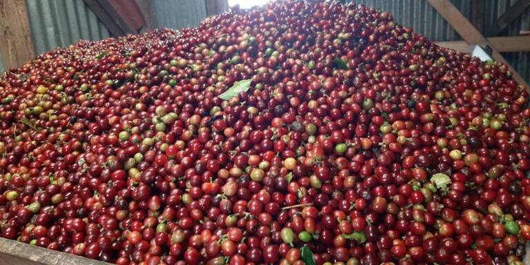 Café maduro después de las recolección en finca de Circasia, Quindío