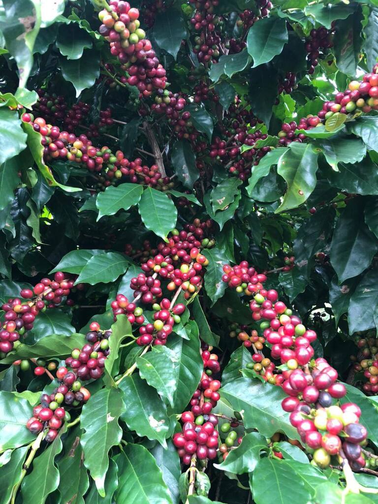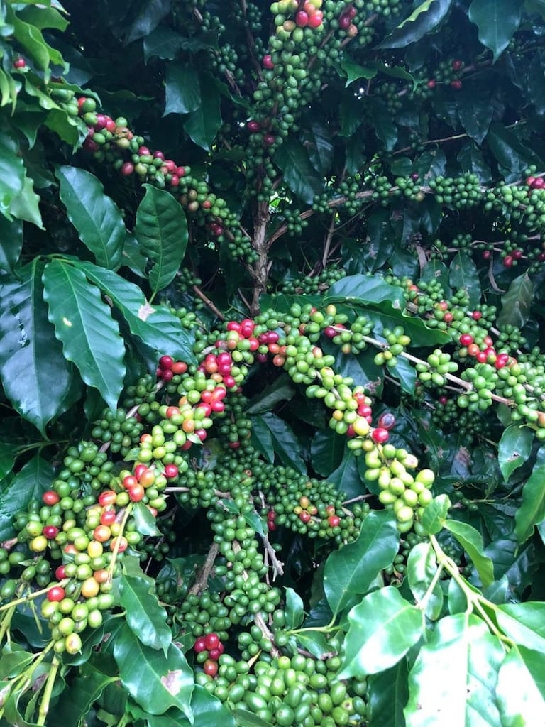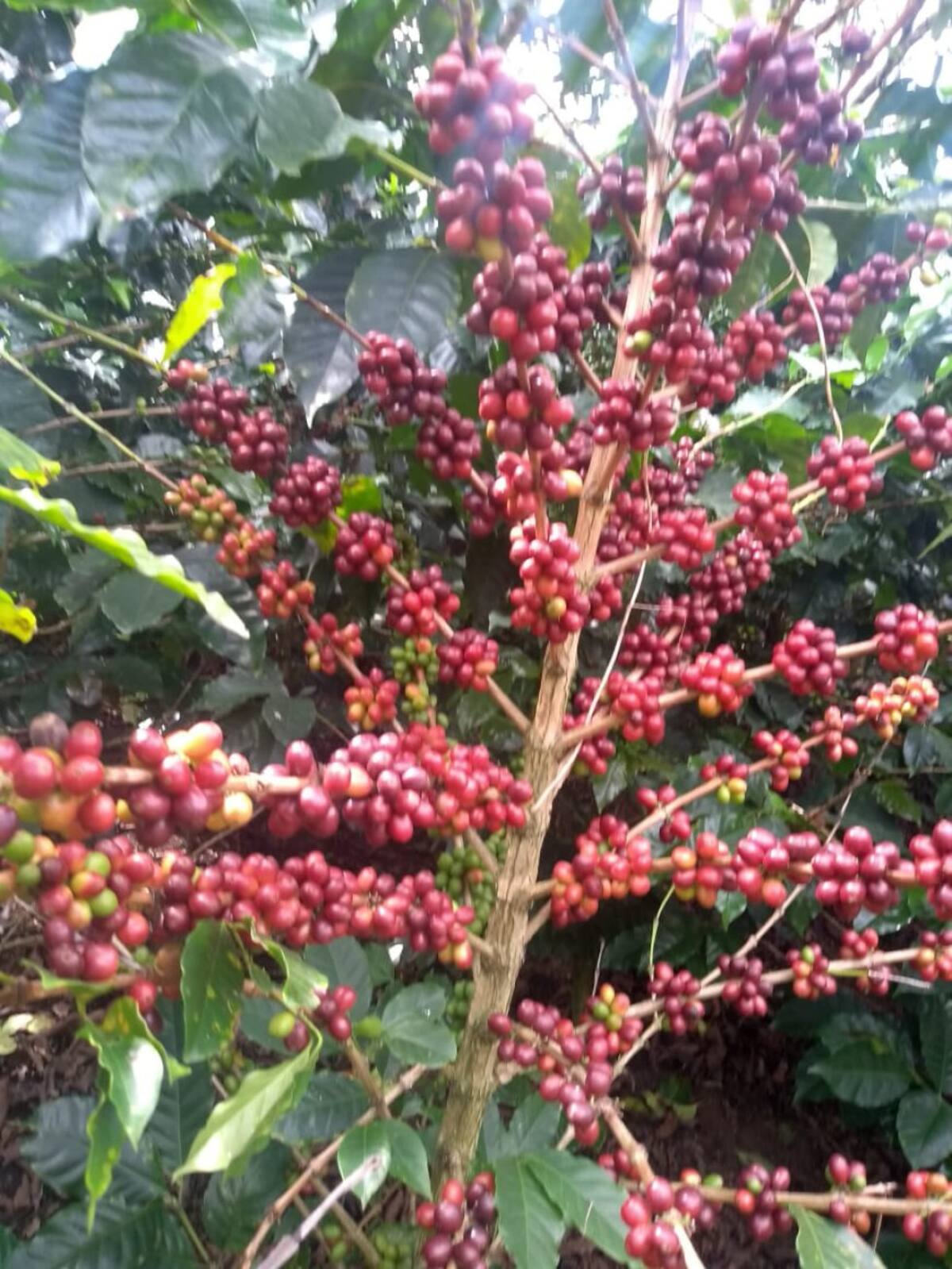 Los árboles de cáfe maduros listos para la recolección