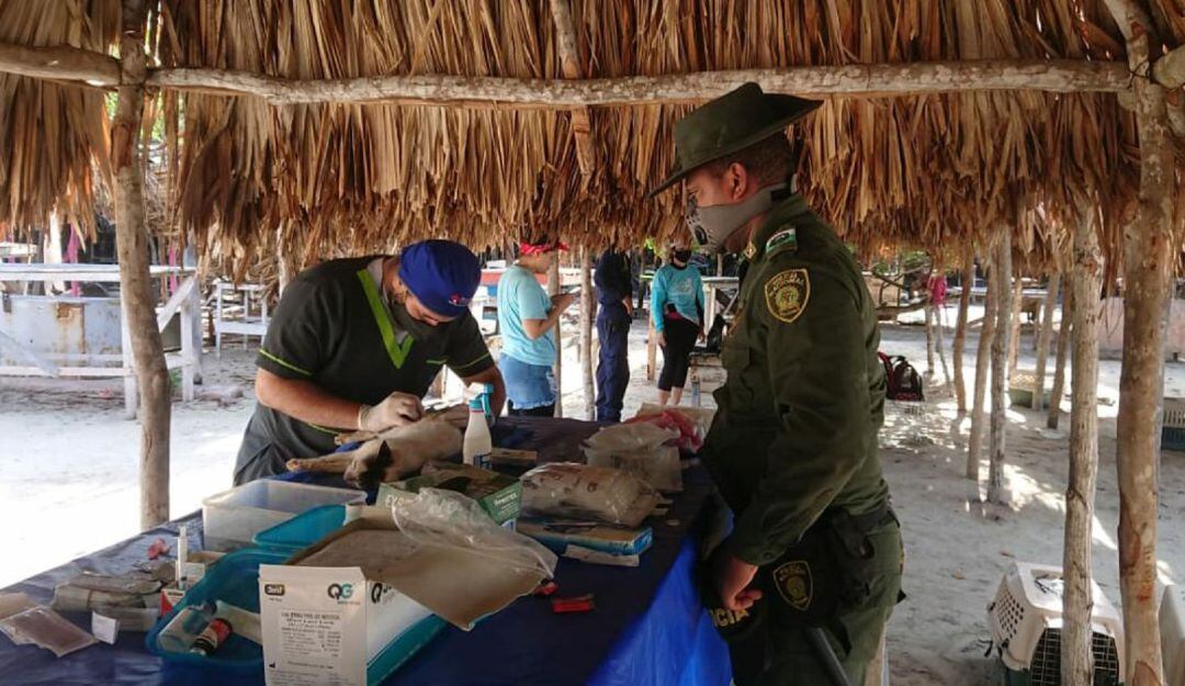 Con el objetivo de verificar las condiciones de salud y nutrición de caninos y felinos, Policías de la Metropolitana de Cartagena, adscritos al Grupo de Protección a la Ecología y el Ambiente, llevaron la campaña “Patrulla Veterinaria Móvil”, brindando una jornada de sanidad y nutrición a estos animales de la isla de Barú y Playa Blanca.