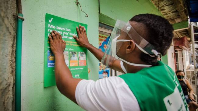 En el marco del Programa de Contención Social “Barrio Heroico”, y en alianza con la Fundación Santo Domingo y su programa de Bienestar y Convivencia “Porque Quiero Estar Bien”, el alcalde William Daut Chamat, líderes y lideresas de El Pozón y Nelson Mandela y voceros de la Fundación, realizaron pedagogía social para la prevención de la COVID-19 en los barrios de Cartagena.