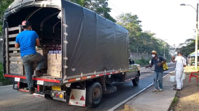 Integrantes de un puesto de desinfección a la entrada del corregimiento, dijeron que sobreviven sólo con la empresa privada