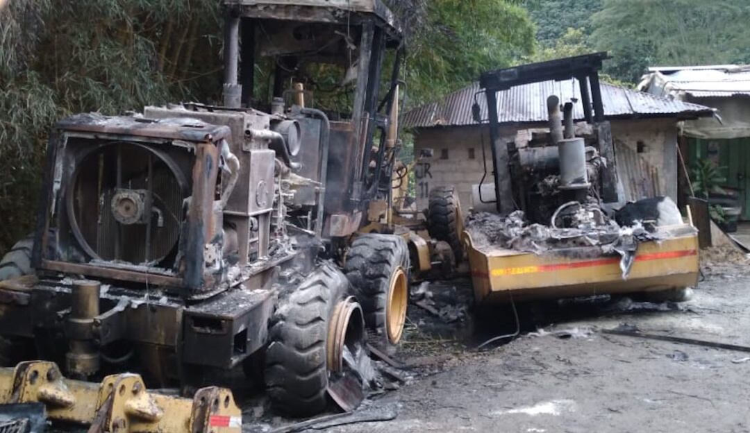 Las dos máquinas quemadas en la vereda El Recreo pertenecían a la empresa El Diamante, las cuales eran usadas en la recuperación de la vía que comunica al corregimiento de Bilbao hasta el punto el Diamante, en una intervención de 2.5 kilómetros.