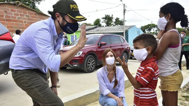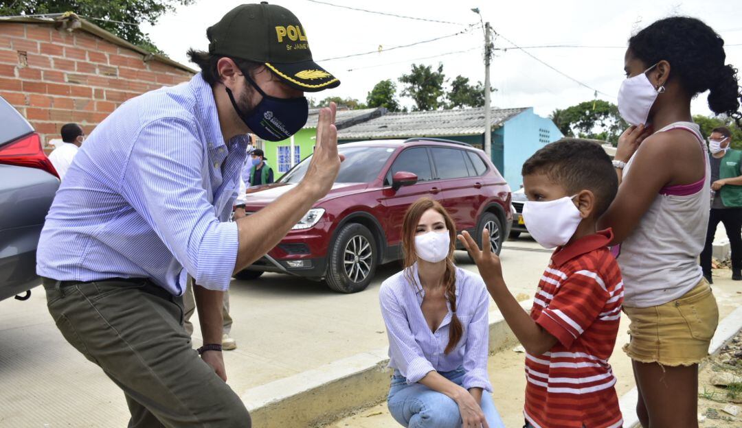 El alcalde de Barranquilla, Jaime Pumarejo Heins, y el director de la Fundación Santo Domingo, José Francisco Aguirre, lideraron un recorrido en el barrio La Sierrita que da inicio a la campaña ‘Porque quiero estar bien, me cuido y cuido a mi gente’.