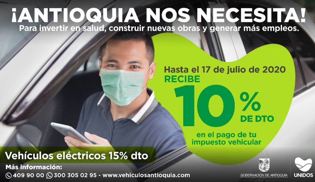 El dinero recaudado en el impuesto vehicular en Antioquia, será invertido en la atención de la salud y en las obras de construcción.